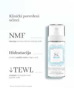 Skintegra Nectar is the second step in the routine of all skin types because it instantly restores lost surface moisture and maximally slows down its evaporation from the skin, thereby strengthening its barrier function. With Nectar, the skin is slightly moist and flexible to the touch and serves as a strong shield against environmental stressors, irritants and allergens.