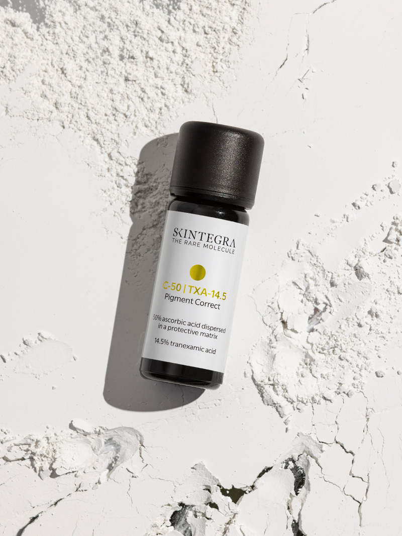 Skintegra C-50 | TXA-14.5 je napredni tretman u obliku praha za blistavost i ujednačenost tena osmišljen za ciljano i dubinsko korektivno i zaštitno djelovanje. Ova jedinstvena formula temelji se na visokoj koncentraciji čiste askorbinske kiseline (50%) u kombinaciji s 14.5% traneksamične kiseline (TXA) i glutationom, stvarajući snažan sinergijski kompleks za posvjetljivanje i ujednačavanje tena.